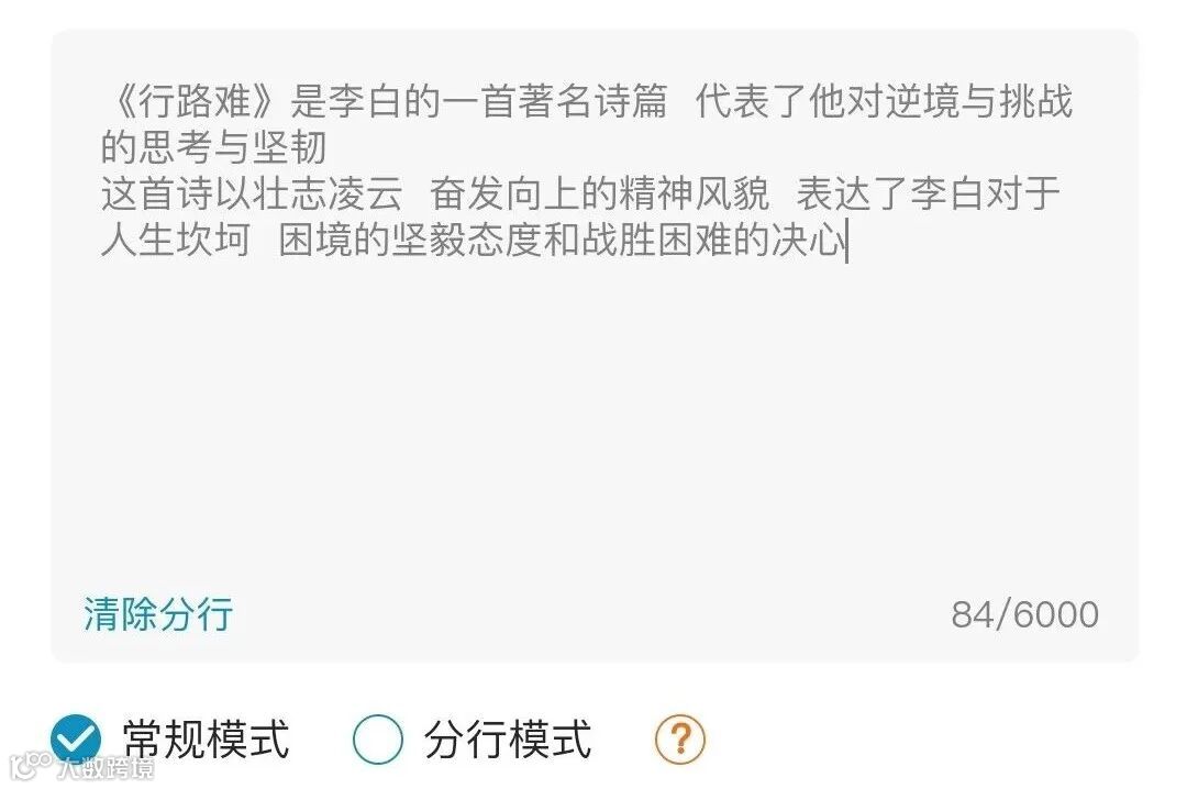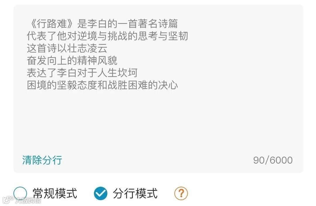 分行模式:需要用户自己在输入文案的时候,按照自己的特殊要求,用换行来分好行,每一行文案对应一行的字幕。这个是非常准确的。