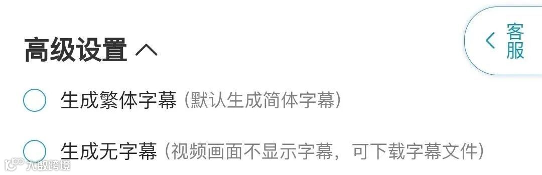 字幕设置:默认会生成字幕,并且是简体字幕。(如下图)