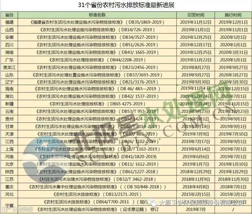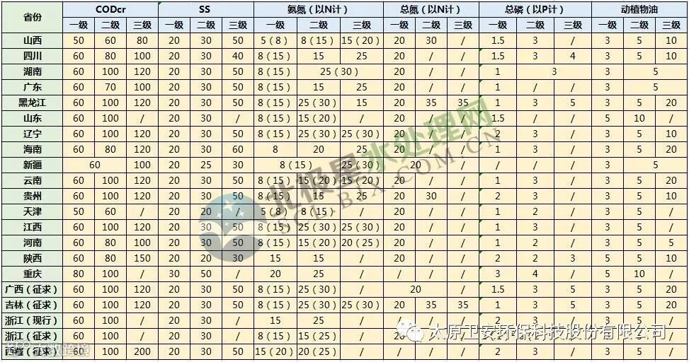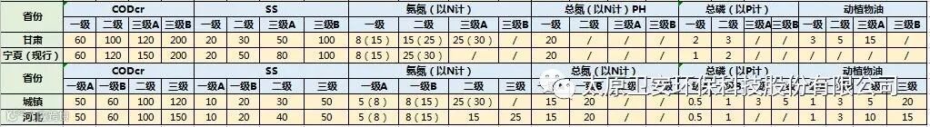 28个省份农村污水排放标准一览表