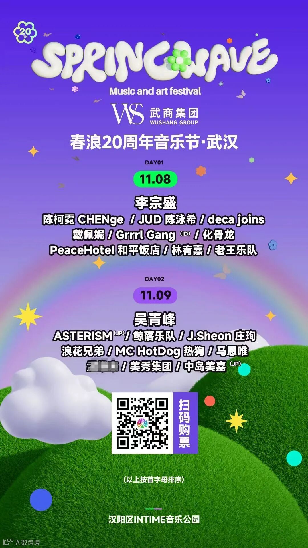 2025年11月8日至9日,春浪20周年音乐节将在武汉市汉阳区INTIME音乐公园盛大开启。