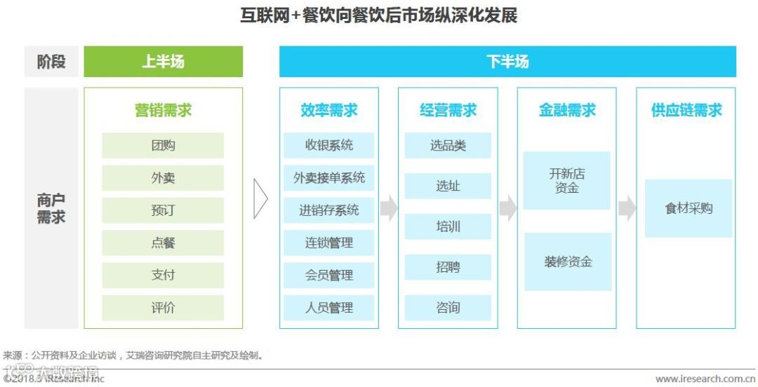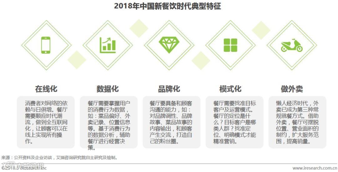 报告指出,目前,“互联网+”逐步渗透餐饮行业,移动智能终端日益普及,顾客用餐的场景、时段、触点、方式等都发生了巨大转变,推进了餐饮业的不断升级迭代,“互联网+餐饮”正式进入下半场。