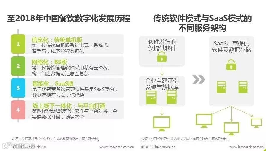 直到第三阶段,餐饮软件开始智能化升级,进入SaaS时代,数据储存在云端,餐饮行业开始进入数据驱动运营的阶段,相较而言,SaaS软件比传统软件在试用成本及C端流量对接上,都具有明显优势。而且在运维方面,餐饮SaaS总体成本投入远远低于传统软件。