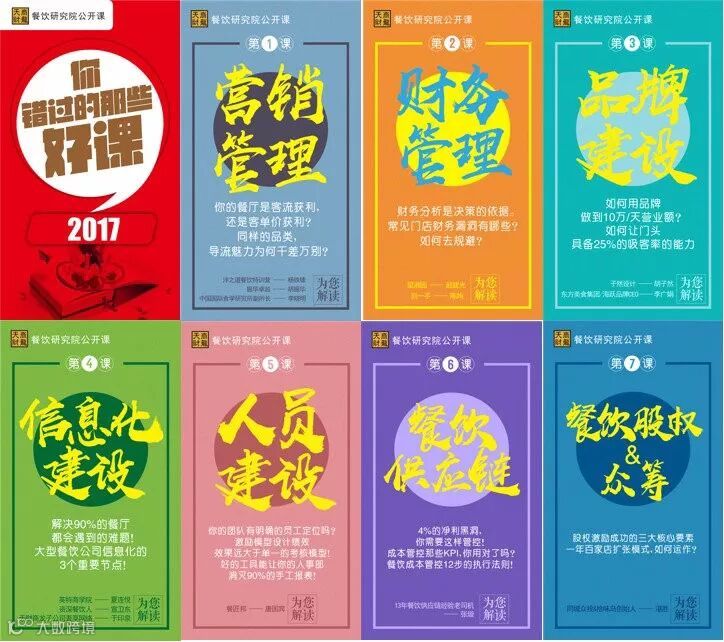 天财商龙餐饮研究院公开课5月上线,二十余人的讲师团队为3万+餐饮人奉献了从财务管理、团队管理、营销推广、品牌建设、信息化建设、供应链建设、金融众筹等全方位的课程体系。