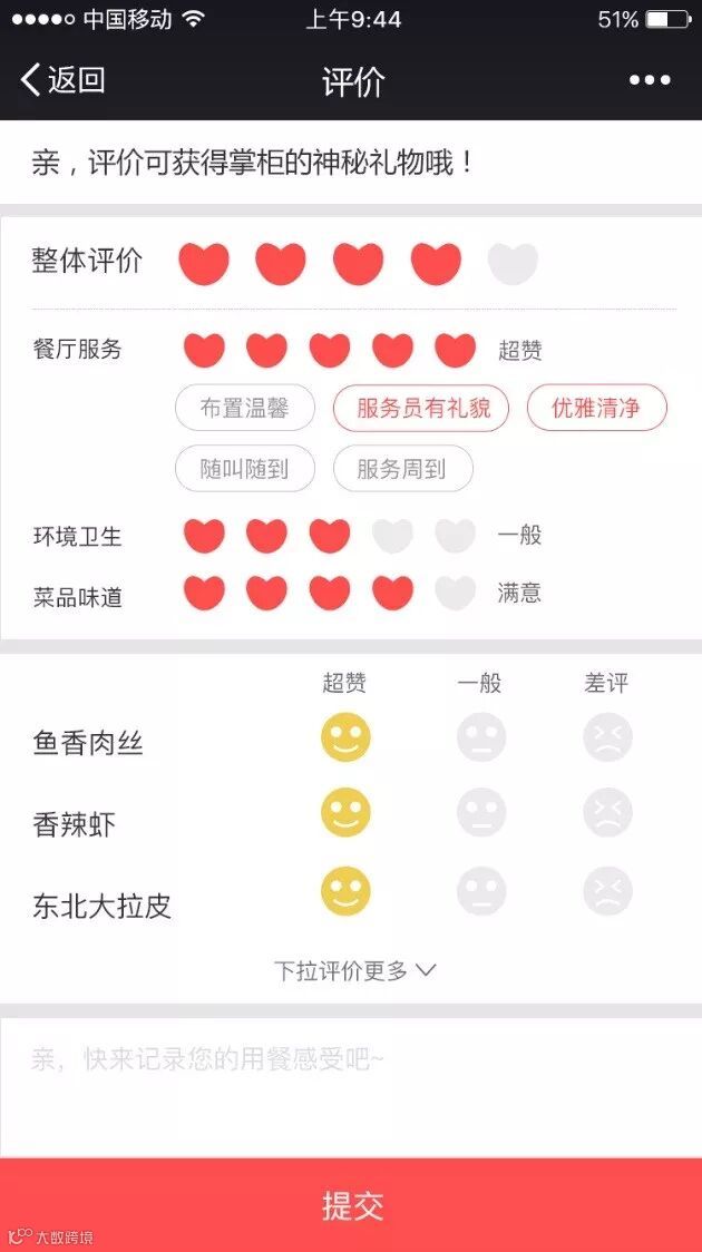 智慧餐厅上线评价功能,通过评价进行员工绩效及门店管理,成为商家管理利器,同时顾客评价也可获券,达到提升二次消费的目的。而且,所有顾客评价内容仅餐厅自己可见,提升服务质量的同时避免负面影响。