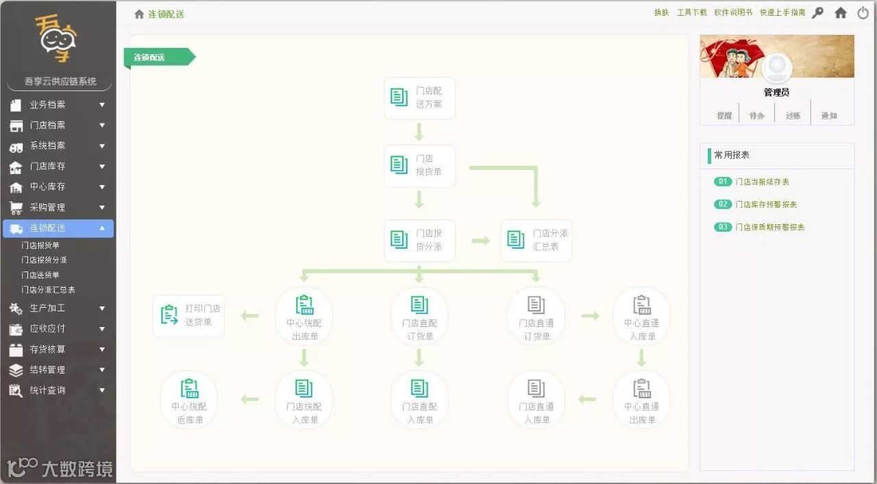 云供应链“连锁配送”模块的正式发布,标志着从“云库存“到”云采购“,再到”云配送“的完整餐企内部供应链的成型,将由此打通餐饮企业连锁供应链闭环!