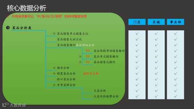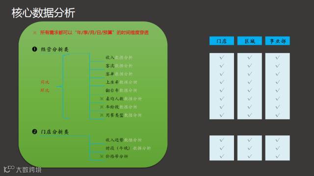 以上数据通过POS系统可以进行收集,但是越来越多的餐饮公司开始讲目光集中于更深层的数据分析。比如,收入的预估,按商圈、门店、地区、包房、时段等进行分析,这些都属于预测和预估分析。