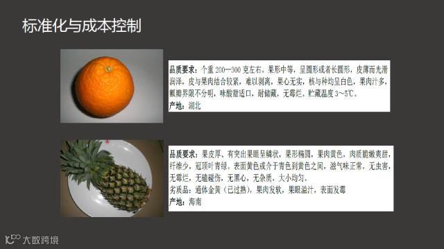 上图中的桔子和菠萝就有明确的原料验收标准。很多餐饮公司没有建立这样的标准,这个标准会影响价格、出成率。举个例子,某公司采购做得很好,所有品项的价格同比下降很多。但是运营部门认为最近的原料不好。后来,数据显示,有些原料的出成率同比下降很多。