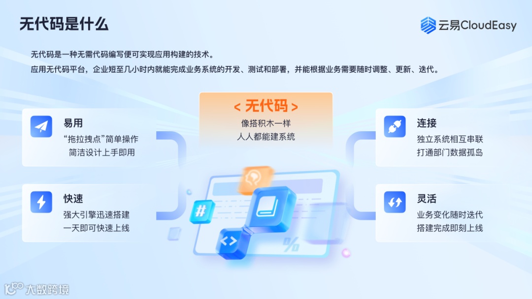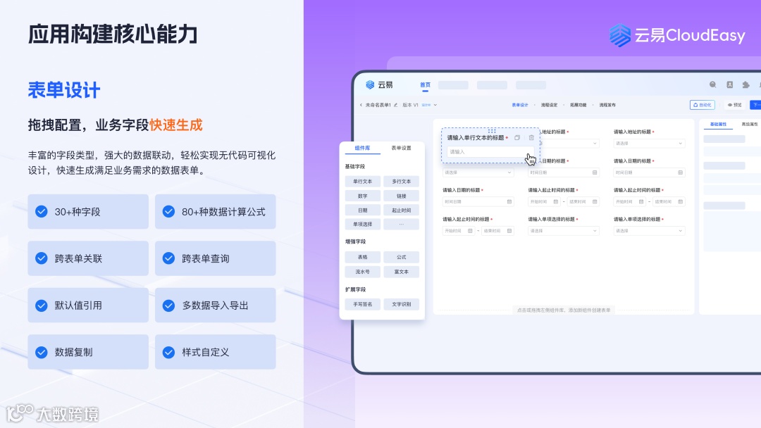【云易CloudEasy】——无代码应用构建平台,适配业务各类人员使用,满足不同角色数字化需求,匹配全专业场景,提供数字化管理高效解决方案,赋能企业数字化转型。