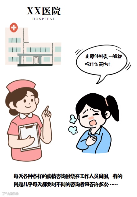医院里,工作人员刚回答完“支原体肺炎”的相关咨询,还没来得及喘口气,下一位咨询者再次询问这个问题,工作人员只好将刚刚回复的答案再次告知,每天类似的回答甚至可以达到上百次;