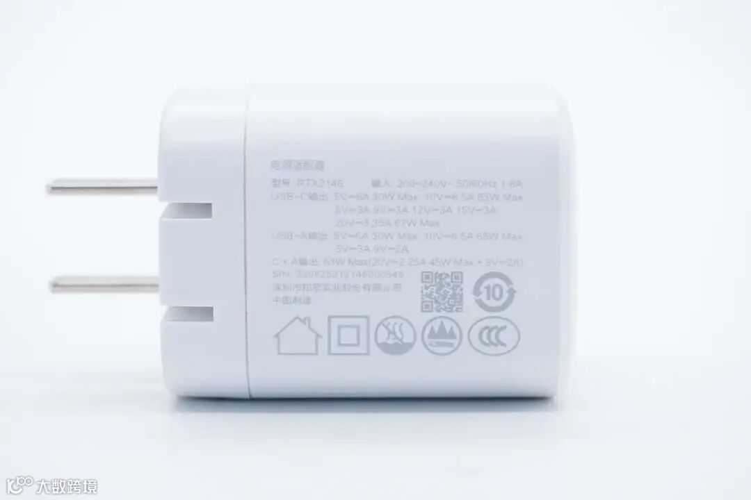 真我推出的这款67W氮化镓充电器采用白色机身,配合折叠插脚涉及,便携好用。充电器USB-C口支持67W PD快充和PPS快充,USB-A口支持OPPO私有65W快充,两个接口均可满足OPPO手机快充,同时USB-C接口支持对笔记本电脑充电,兼容性还是不错的。
