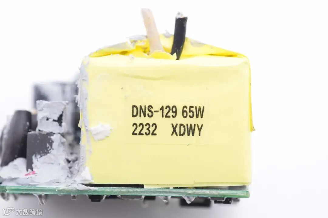 变压器标注65W功率,严密缠绕胶带绝缘。