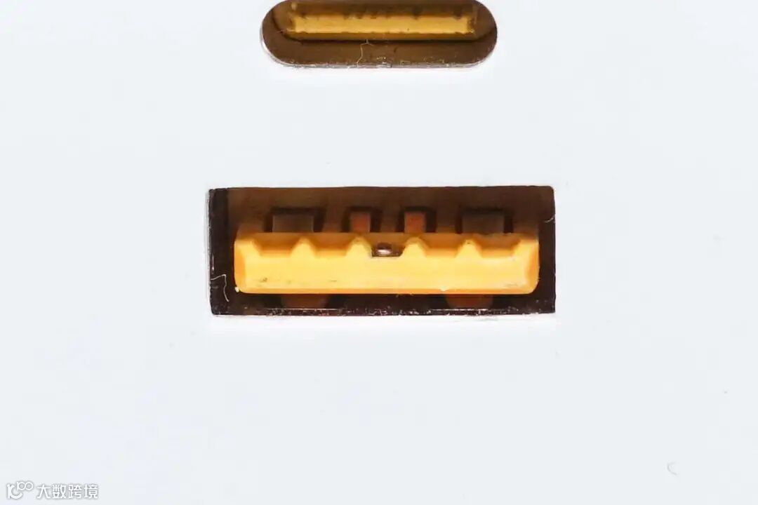 USB-A母座前端带有特殊触点,正负极加宽设计。