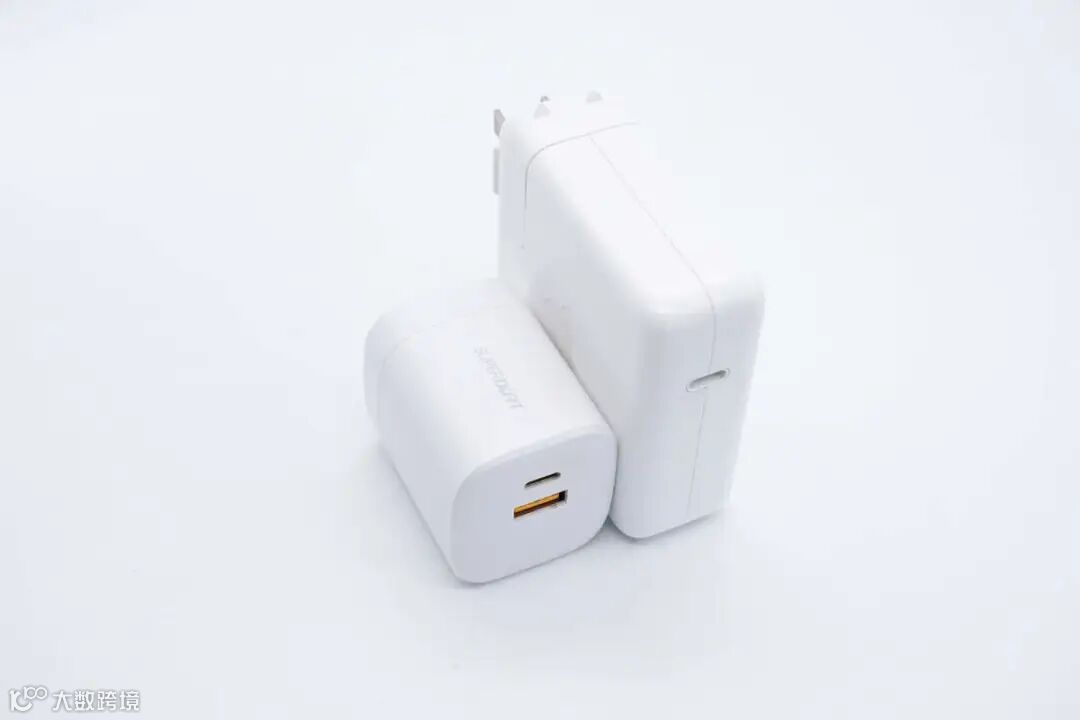 真我 67W双口充电器与苹果原装67W充电器相比,体积优势非常明显。