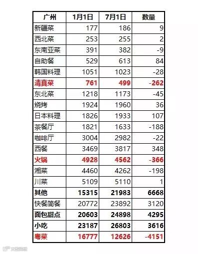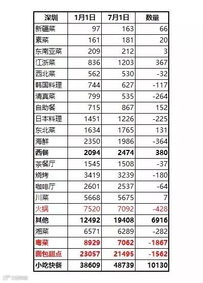 【上半年餐饮商家增幅数据表】
