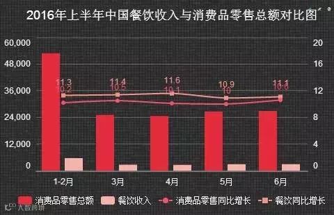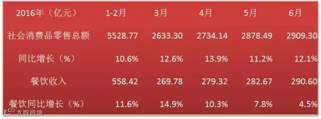 近日,国家统计局发布数据:2016年1-6月份,社会消费品零售总额156138亿元,同比增长10.3%。其中值得关注的是,餐饮收入强势增长11.2%,达16683.2亿元。