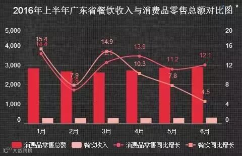 自4月份以来,广东省餐饮业增速持续大幅下跌,月环比跌幅分别是4.6%、2.5%、3.3%,4-6月份增速总跌幅高达10.4%,呈现出高台跳水的颓势。