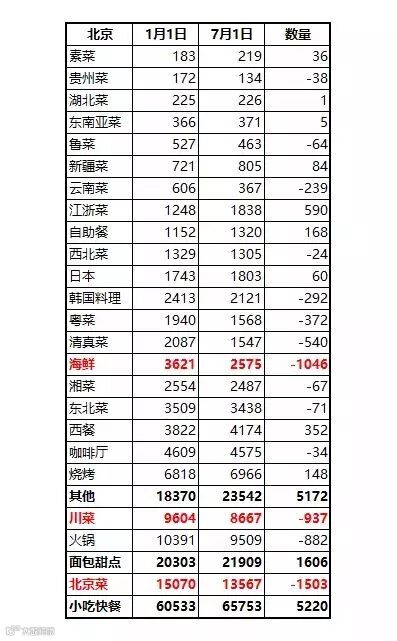 3、增量与增幅负增长的四个主要品类是:川菜、北京菜、海鲜、火锅,代表这四个品类市场基本饱和、正逐渐被边缘化。