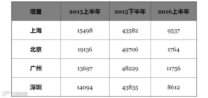 2016年上半年,上海、北京、广州、深圳四个一线城市的餐饮商家存量发生了哪些变化?