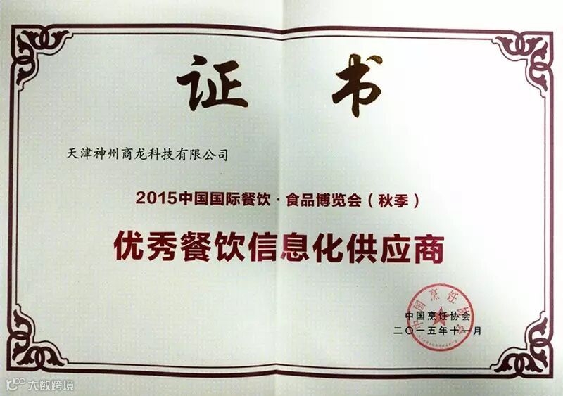 天财商龙作为餐饮信息化管理的领跑者,不遗余力为行业内致力于餐饮信息化管理的企业提供优秀的技术支撑,商龙20年的努力获得主办方的肯定,并特此颁发“优秀餐饮信息化供应商”奖项。