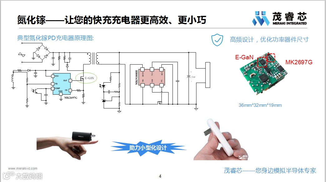 众所周知,高频化设计可以有效减小变压器和电容的容量,从而实现产品的小型化,使快充充电更高效,更小巧。高频系统里面除了高频器件以外更离不开高频控制器,这正是茂睿芯团队所研发的MK2697G的用武之地。