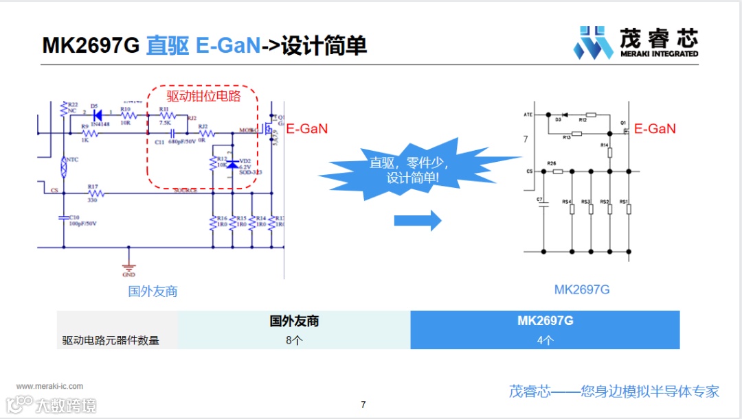 通过对比发现,MK2697G采用了直驱的方式,无需钳位电路,简化设计,元件器从原来的8个减少为4个,使得设计更简单。