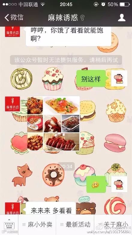 微信搜索“malayouhuocy”24小时人工在线,等你来调戏!没有错,麻辣诱惑在客户维护是基于持续沟通来打造顾客关系。将微信作为餐饮商家与顾客沟通的工具,将顾客变成自己的“好友”,通过这一策略,一对一的交流让服务来得更加人性化,通过交流深挖顾客偏好能够刺激顾客产生心理认同感,即便不经意的细节也可以唤起顾客心底的那份感动。如此,顾客黏性的问题也得到了相应的解决。试问,有哪位客官会将如此般的关怀型服务拒之门外呢?