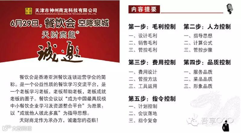 关注“天财商龙”与“吾享O2O”微信公众号,并通过微信回复姓名及联系方式报名