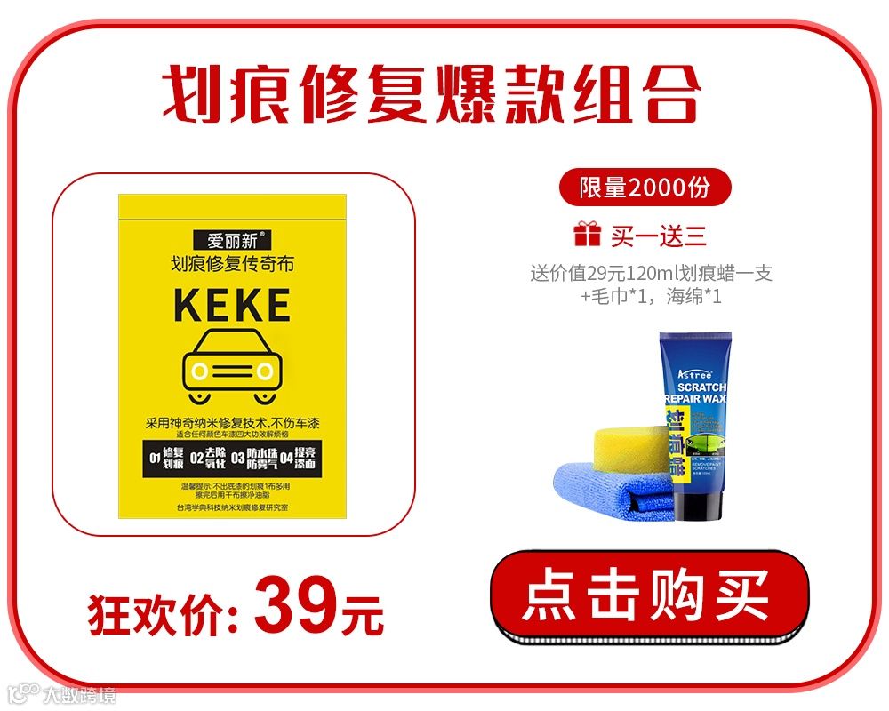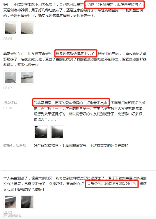 (2)修复布属于超微修复,需要一点一点的反复擦拭,直至划痕消失。如果觉得漆面油腻可以用干布均匀擦拭;