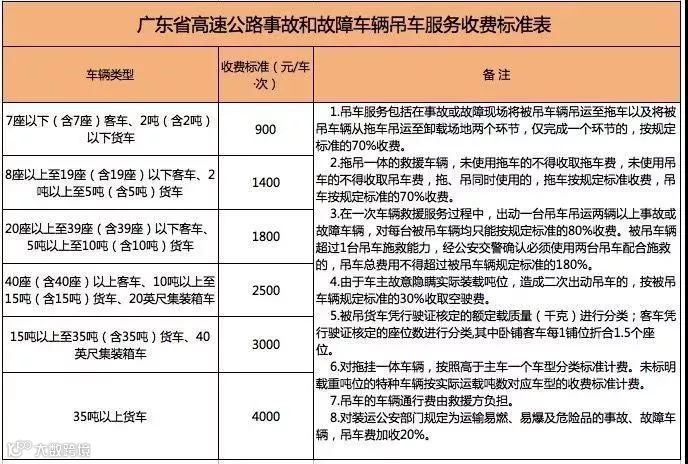 广东省发改委发布《关于完善高速公路救援服务收费标准有关问题的通知》,公布了最新高速公路(含快速路)救援收费标准,并在2019年10月15日起执行。
