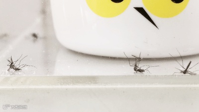 我们把蚊子放进玻璃罩内,然后放入小柠家驱蚊剂,蚊子马上逃到边缘角落,并且不能正常飞行,变得跌跌撞撞。