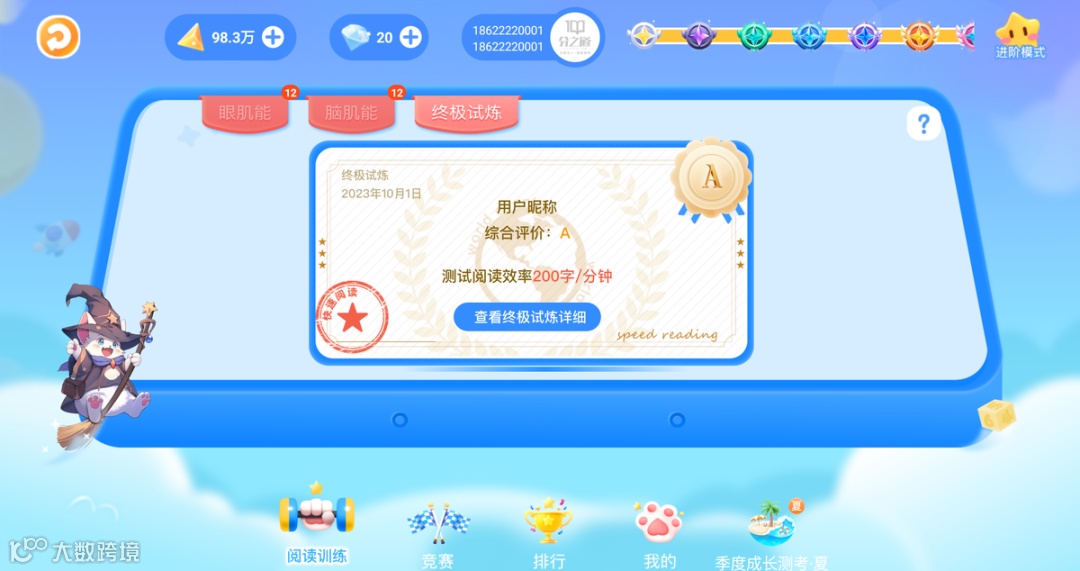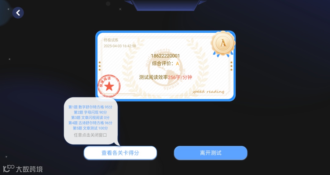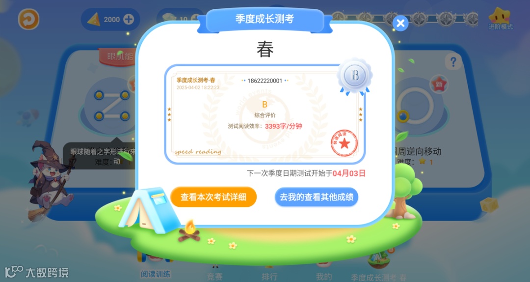 孩子全部关卡完成以后,最终检验孩子的阅读水平⑤「成绩查询」
