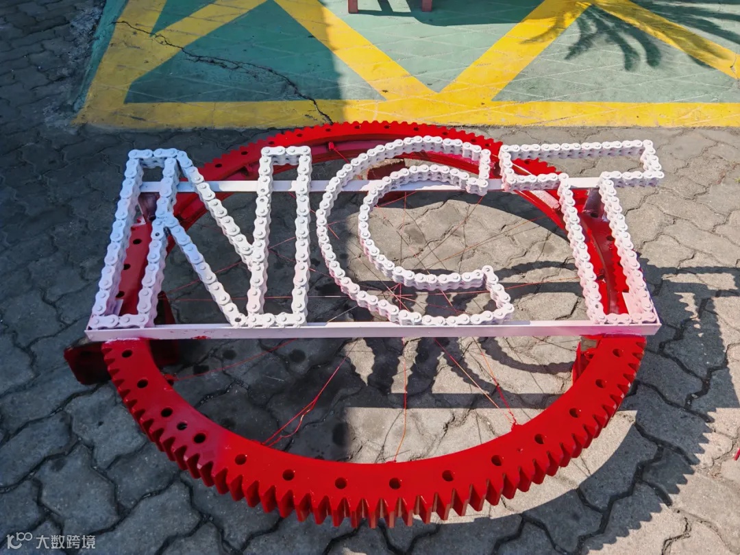 采用原料链条和大盘齿圈,将“NCT”三个字母与链条、齿圈的机械结构紧密结合,突出工业感和力量感。在字母的转角处加入齿轮元素,增强机械感。