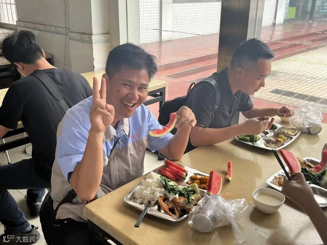 从7月16日开始,公司工会联合后勤部门连续三周每周两次将清甜可口的西瓜送到现场小饭堂,供一线员工中班饭前食用,防暑解渴。