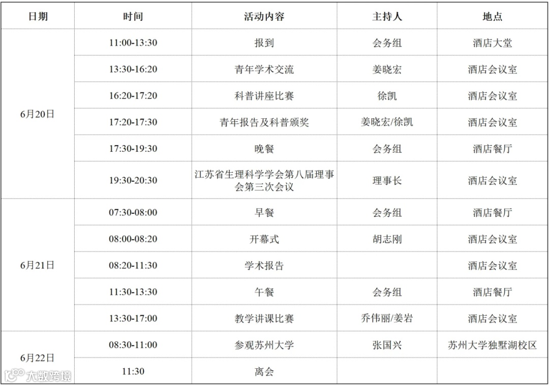 为促进江苏省生理学发展和青年学者学术交流,推动公众科学素养提升,深化教育教学改革创新,全面增强江苏省生理科学学会的学术引领力与社会影响力,由江苏省生理科学学会、联合青年工作委员会、科普宣传委员会与教学委员会共同主办,苏州大学医学院承办的2025年度联合会议定于2025年6月20日-22日在苏州金陵雅都大酒店召开。本次大会以“融合·创新·赋能—构筑生理科学多维发展新生态”为主题,设立多特色活动板块,欢迎省内外从事生理学及相关领域科研工作的科研工作者、青年学者、科普工作者、高校教师,以及医学教育管理者、科技馆专业人员等参会交流。