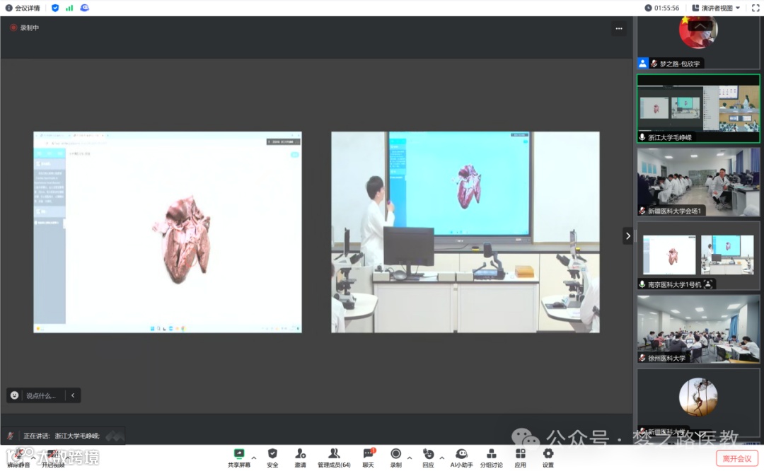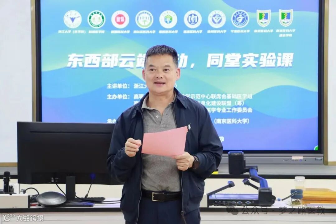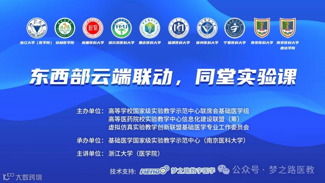 2024年05月07日,一场别开生面的教学活动——“东西部云端联动,同堂实验课”在南京医科大学成功举办。此次活动由高等学校国家级实验教学示范中心联席会基础医学组、高等医药院校实验教学中心信息化建设联盟(筹)、虚拟仿真实验教学创新联盟基础医学专业工作委员会联合主办,南京医科大学基础医学国家级实验教学示范中心承办,浙江大学(医学院)主讲,上海梦之路数字科技有限公司提供技术支持。活动汇集了浙江大学医学院、桂林医学院、新疆医科大学、哈尔滨医科大学、重庆医科大学、福建医科大学、徐州医科大学、宁夏医科大学、南京医科大学及南京医科大学康达学院等十所高校的师生共同参与,共同探索实验教学的新模式。
