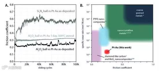 “许多开发出来的传统合金往往是通过减小颗粒尺寸来增加材料的强度,” 桑迪亚国家实验室博士后研究员、论文第一作者约翰·库里(John Curry)在一份声明中指出。即使如此,在极端压力和高温条件下,许多合金会变粗或变软,在金属疲劳状态下尤为如此。我们发现,我们所开发的铂金合金的机械应力和热稳定性都非常好。在摩擦期间,我们没有观察到合金的微观结构在长时间的周期应力下有很大的变化。”