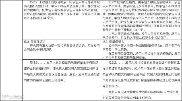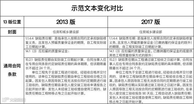 2017版施工合同示范文本相对于2013版,主要是在2017年7月1日实施的住建部、财政部修订的《建设工程质量保证金管理办法》基础上,完善了与质量保证金有关的条款——