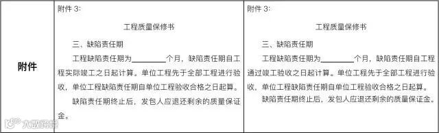 4、细化了缺陷责任期起算点,尤其是将2013版的发包人原因无法按期验收时的缺陷责任期的起算由原来“承包人提交竣工验收申请报告之日”修改为“承包人提交竣工验收报告后90天后,工程自动进入缺陷责任期”