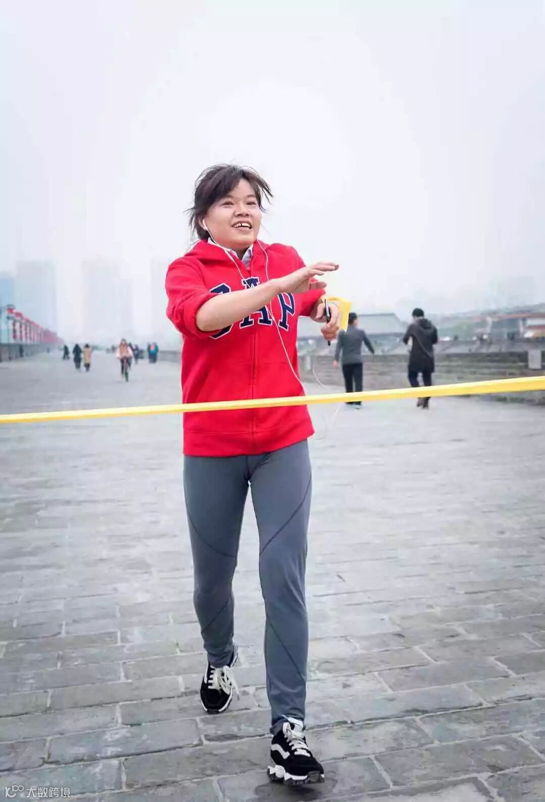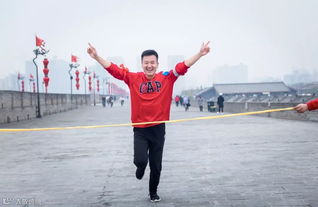 伴随着鸣笛发令,身穿红色运动衫的选手们犹如一片祥云,穿过起跑点含光门城楼,经过西门,北门,到达终点。