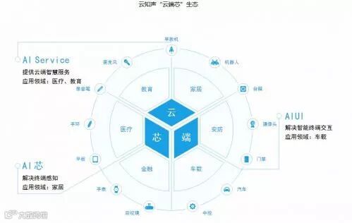 成立于2012年的知声是一家专注物联网人工智能服务公司。云知声利用机器学习平台(深度学习、增强学习、贝叶斯学习),在语音技术、语言技术、知识计算、大数据分析等领域建立了领先的核心技术体系,这些技术共同构成了云知声完整的人工智能技术图谱。在应用层面, AI芯、AIUI、AI Service三大解决方案支撑起云知声核心技术的落地和实现,已经在家居、车载、医疗和教育等领域有广泛应用,形成了完整的“云端芯”生态闭环。