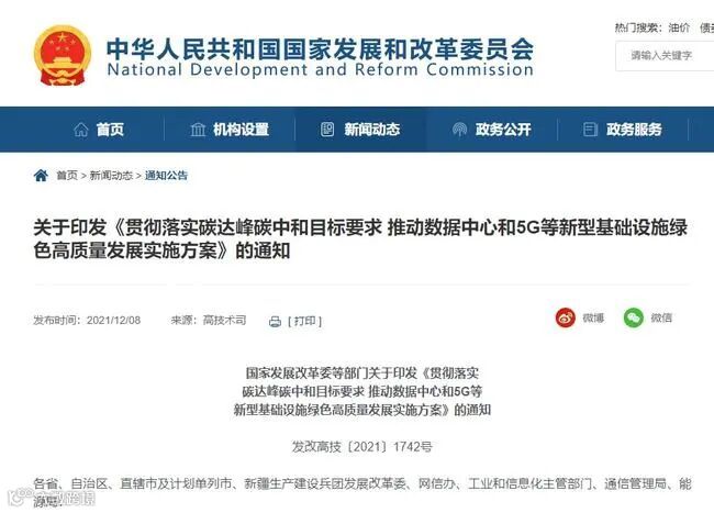 近日,国家发展改革委、中央网信办、工业和信息化部、国家能源局四部门印发了《贯彻落实碳达峰碳中和目标要求 推动数据中心和5G等新型基础设施绿色高质量发展实施方案》。