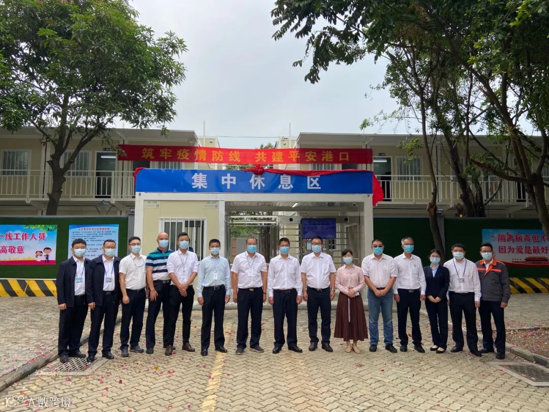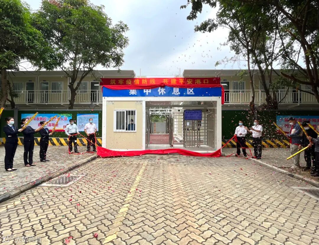 南沙海港公司集中休息区位于南沙海港公司宿舍区西侧,占地面积2540平方米,由2栋2层、2栋3层高板房,1间保安门禁房及2间垃圾房围蔽组成,共有住宿板房179间、会议室1间,住宿板房室内配备独立的卫浴间、配置1.5匹空调、洗衣机、热泵式热水器、1.2米宽单人床、双门衣柜、桌凳、电风扇、热水壶、晾衣架等生活电器及家具,同时在每个房间为入住人员配发沐浴露、洗发水、洗衣液、牙膏牙刷等生活用品,为一线作业人员提供舒适安全的居住环境。