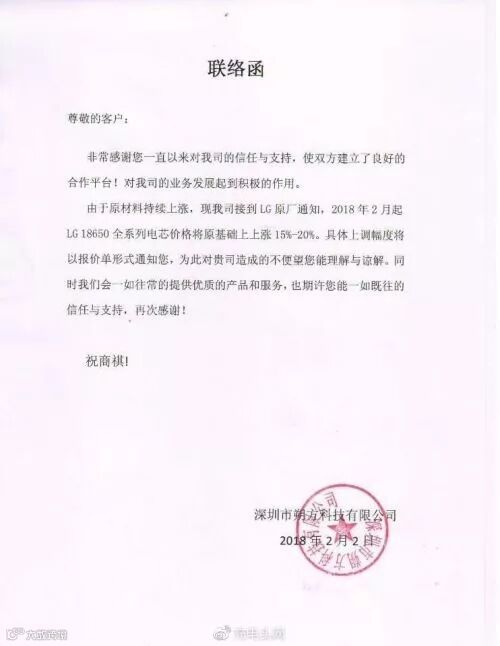 据充电头网报道,受原材料持续上涨影响,有供应链厂商接到LG原厂通知,自2018年2月起,LG 18650全系列电芯价格将上涨15%-20%,这意味着我们常用的充电宝要跟着一起涨价了。