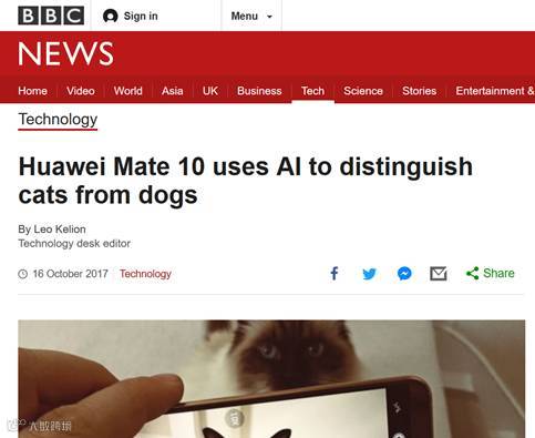 HUAWEI Mate 10这一亮点功能也受到了海内外媒体的关注。来自英国BBC的报道指出,HUAWEI Mate 10的AI不仅可以识别宠物,还能进一步识别是猫咪还是狗狗,据此进行更加精准与专业的拍摄。