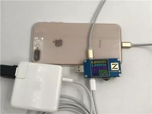 破解版C to lightning线,8.8V/1.7A,功率约为15W,支持iPhone 8 plus快充。