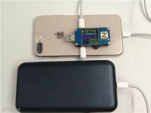 通过测试数据的对比表可见,对不同的供电设备,破解版C to lightning线与苹果原装线在充电功率上并无太大的差别,均可适配iphone 8 plus进入快速充电模式。