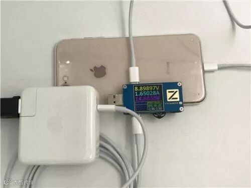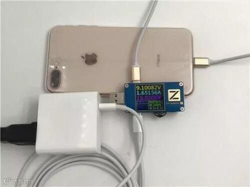 破解版C to lightning线,9.1V/1.65A,功率约为15W,支持iPhone 8 plus快充。