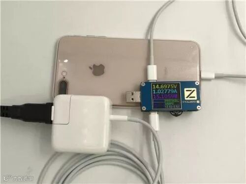 破解版C to lightning线,14.7V/1A ,功率约为15W,支持iPhone 8 plus快充。