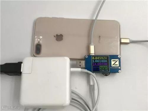 破解版C to lightning线,8.84V/1.7A,功率约为15W,支持iPhone 8 plus快充。