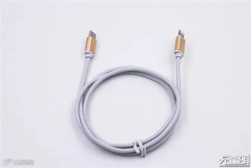 由于这条线暂未上市,没有过多的外包装。线材材质为无卤TPE,类似于苹果原装线,手感不错。两端的充电接口也与原装线不同,采用了铝合金外壳,并阳极喷砂成土豪金色。另据工厂透露,还有一个接头银色版。